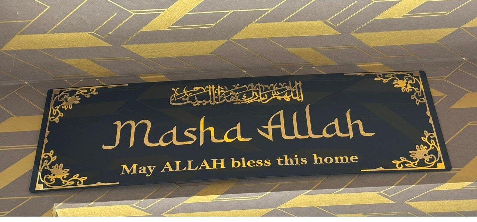 “Masha Allah” means “What Allah has willed.” It’s a phrase of admiration and protection, often said to avoid envy and show gratitude. This elegant calligraphy reminds you that every blessing is by Allah’s will”