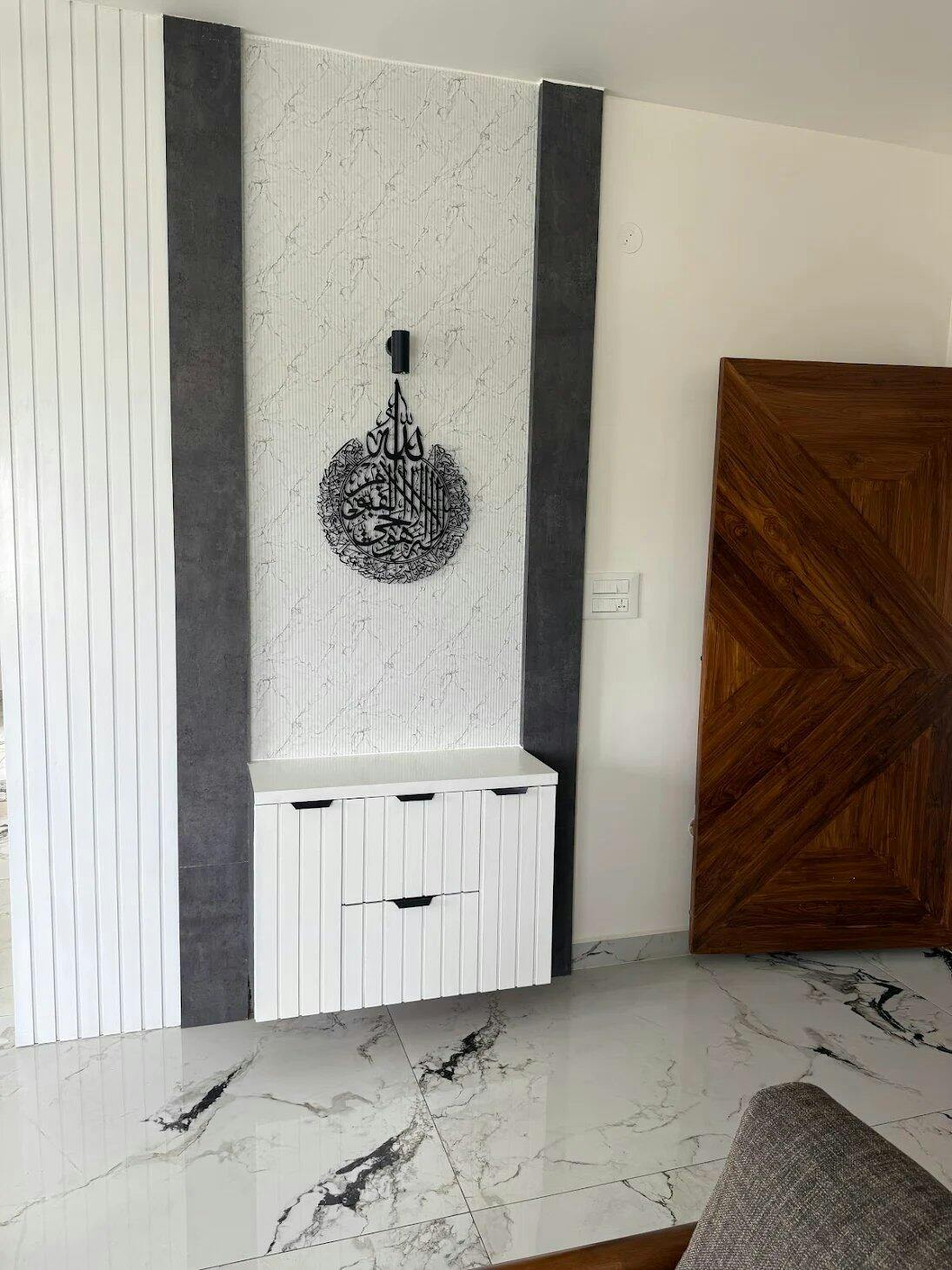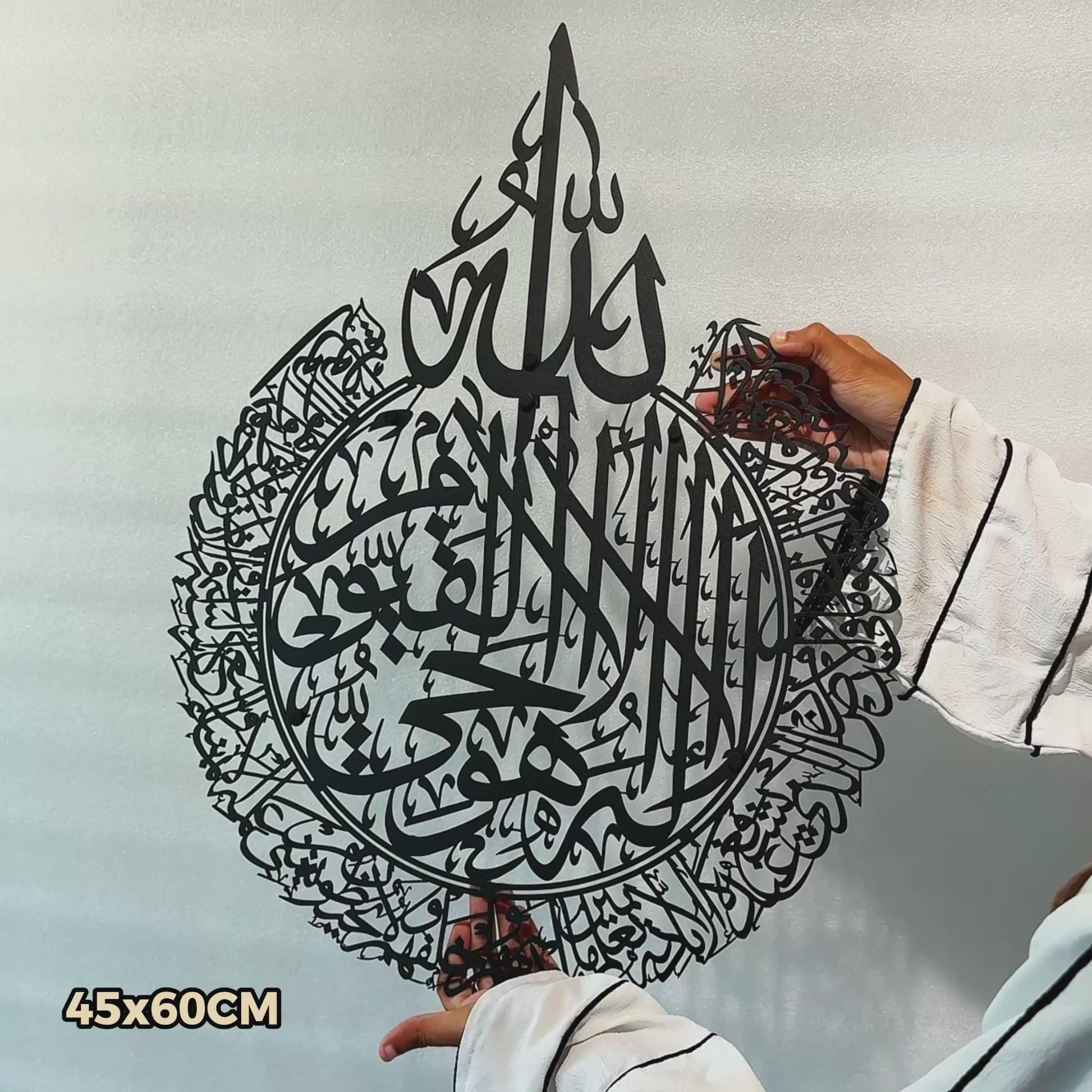 “This is a legendary design Adored by many, it features Ayatul Kursi slightly larger than the Quls. Size mentioned is for one of the Quls in the set.”