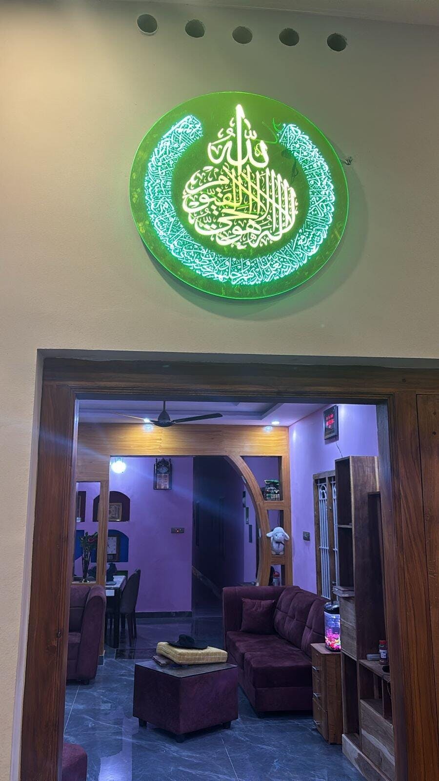 Transform your living space with the spiritual elegance of this beautifully crafted Illuminated Ayatul Kursi LED Mirror Frame. Designed to inspire and illuminate, this piece features the powerful verses of Ayatul Kursi etched in Arabic script and backlit with a warm LED glow that adds serenity and sophistication to any room.