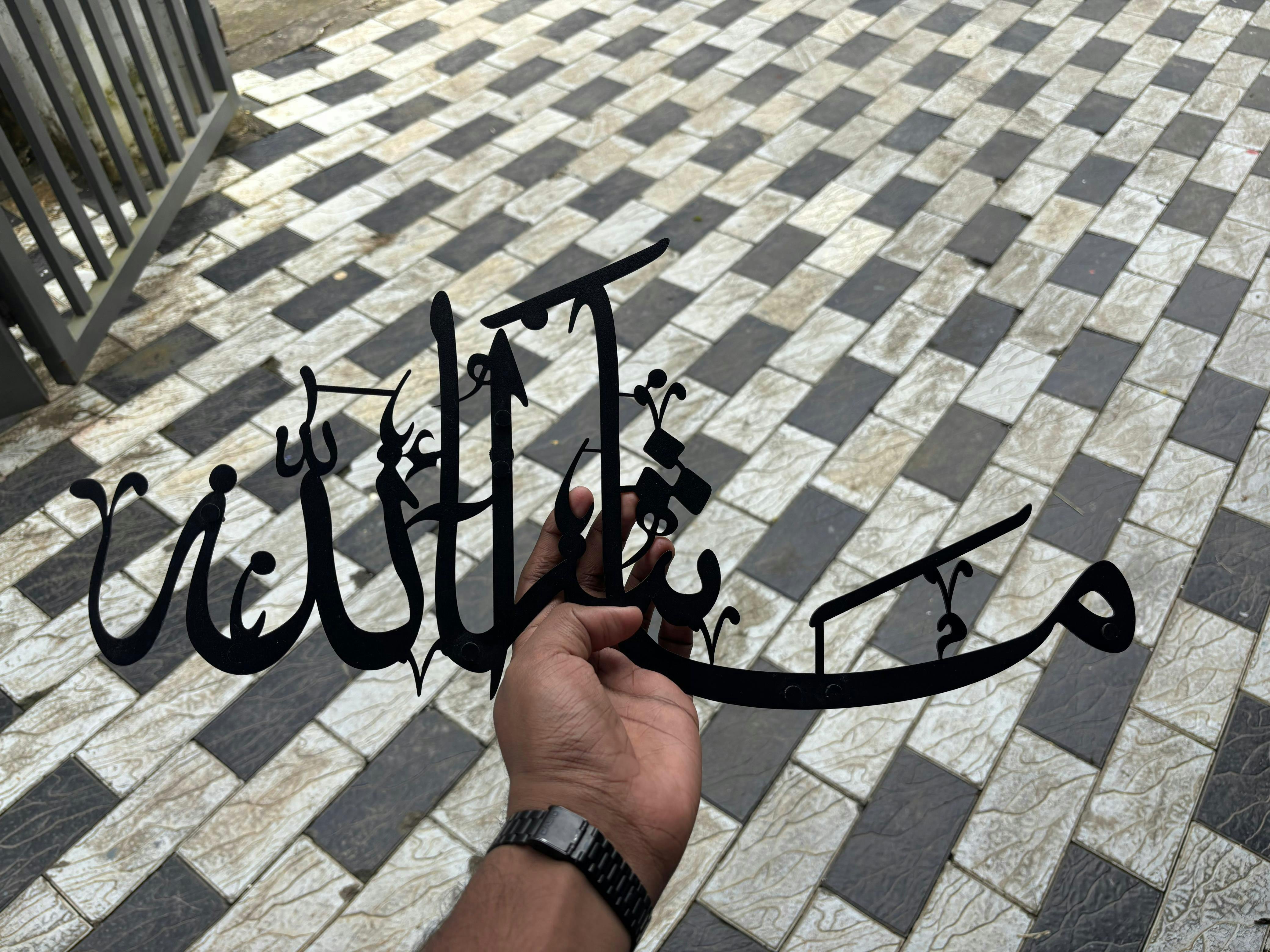 “Masha Allah” means “What Allah has willed.” It’s a phrase of admiration and protection, often said to avoid envy and show gratitude. This elegant calligraphy reminds you that every blessing is by Allah’s will”